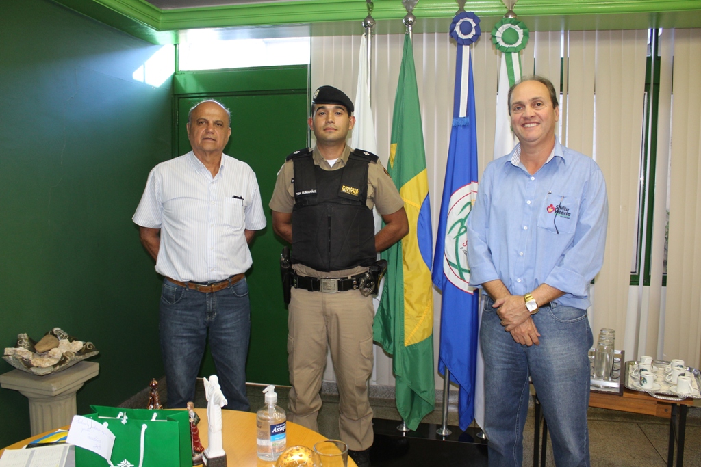 Na oportunidade o Prefeito Salim Curi e o Vice-Prefeito Renato José de Paula convidaram Comandante do 6º Pelotão da Policia Militar de Santa Vitória – 2º Tenente Marcos Guimarães de Oliveira para discutirem alternativas conjuntas de combate aos crimes contra o patrimônio em Santa Vitória.