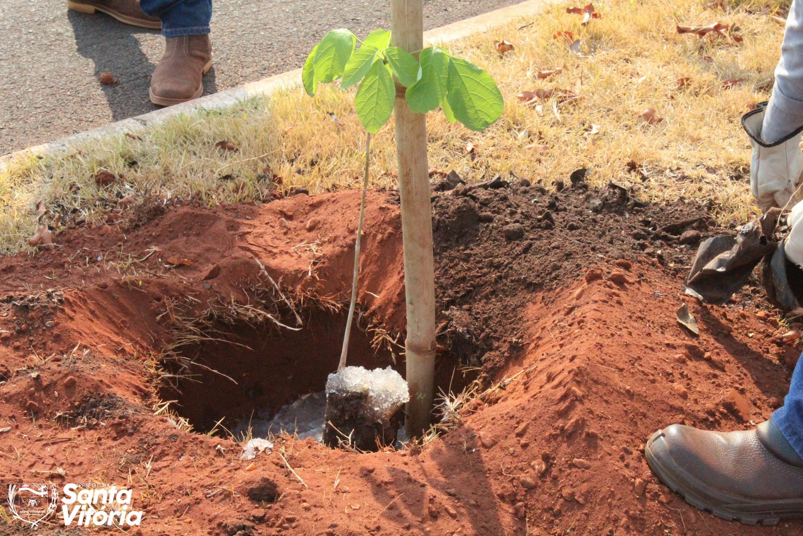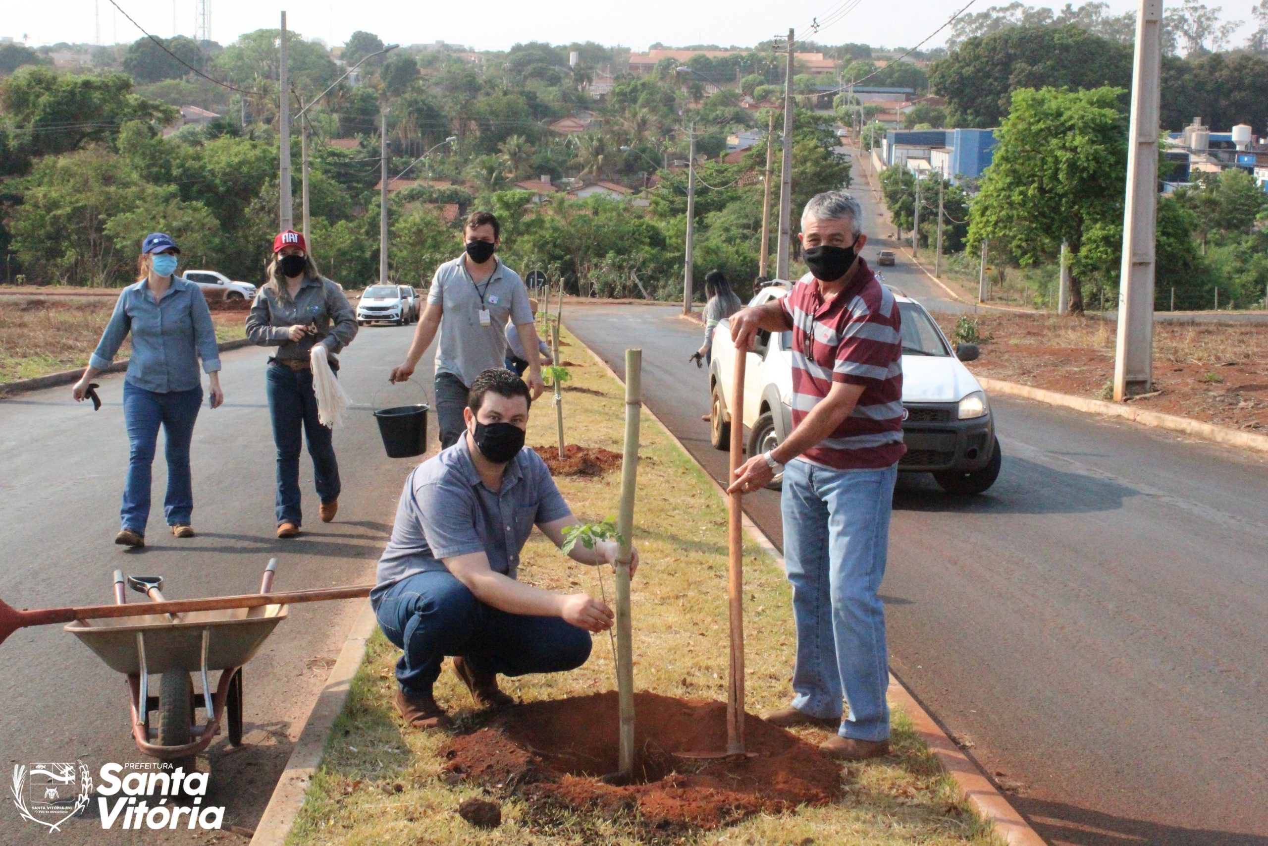 Em comemoração ao Dia da Árvore, a Prefeitura Municipal de Santa Vitória por meio da Secretaria de Meio Ambiente e Pesca, Secretaria de Agricultura, Pecuária e Abastecimento e Secretaria de Obras e Serviços Urbanos em parceria com a Usina Santa Vitória Açúcar e Álcool (SVAA), realizou na manhã desta terça-feira, dia 21, o plantio de 160 mudas de ipês branco no canteiro central da Rua Zeferino Justino Tavares, Bairro Jardim Europa.